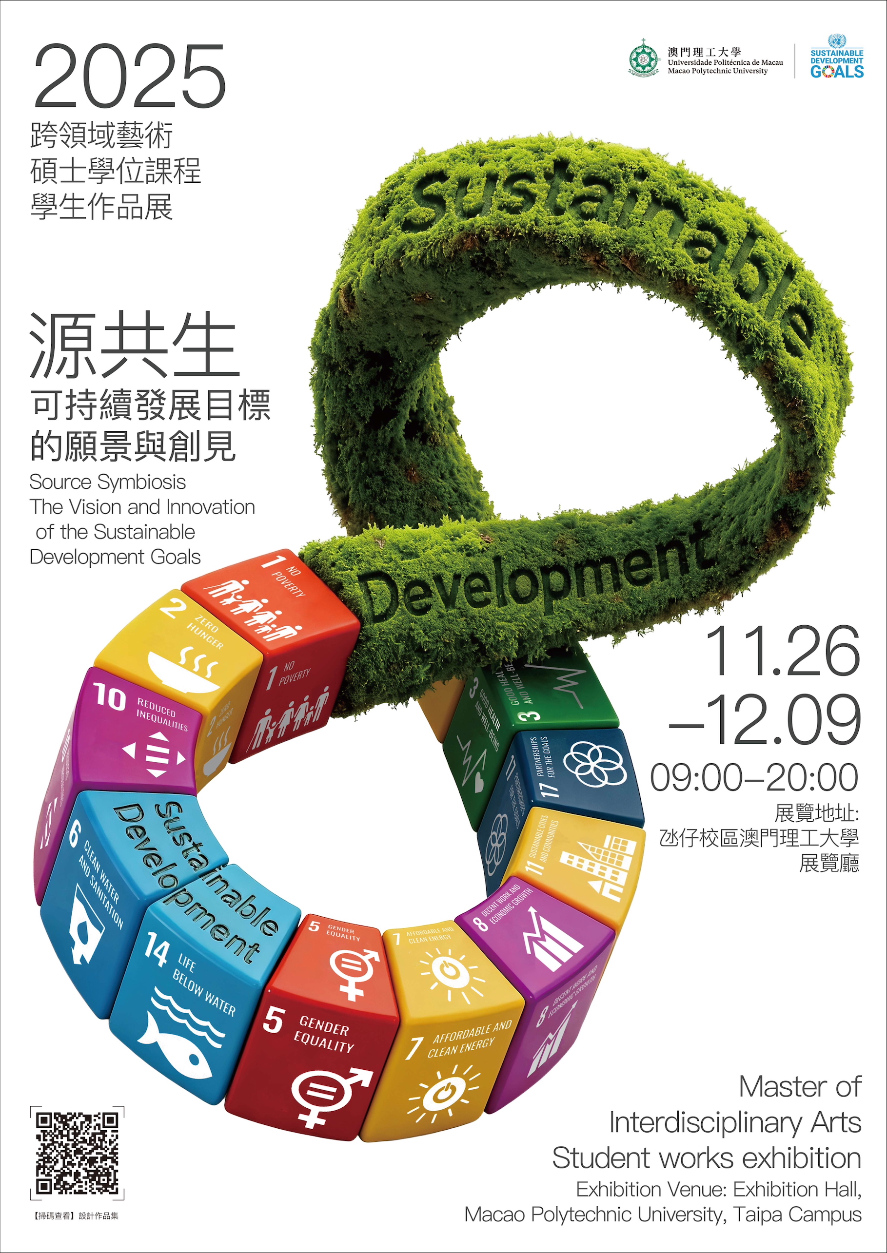 澳門理工大學舉辦「源共生--可持續發展目標的願景與創建」跨領域藝術碩士學位課程學生作品展,展出11組《設計專題研究》學科的學生學習成果作品。學生以聯合國可持續發展目標(SDGs)為設計研究對象,以跨領域藝術設計思維為基礎,應用海報、繪本、立體、影像、產品設計等多元媒介製作解決方案,以此強化對SDG的認知、展現本學科兼容創新的教學成果,突顯人文藝術精神。展出的其中一件作品獲香港文化藝術與可持續設計協會(HKASD)頒發2025年國際可持續設計全球卓越大獎、創新創意獎及可持續發展領袖獎(ISDA2025)。