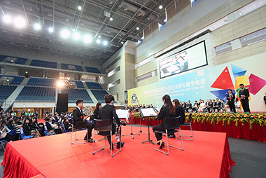 Macao Polytechnic Institute has successfully held the opening ceremony for the new academic year 2017-2018 in the afternoon of August 18 at the MPI Sports Pavilion. This year has witnessed a total number of 900 new students getting enrolled in various MPI programs, more than 80% are local students, and about 10% from the mainland and overseas. During the ceremony, more than 500 outstanding students were awarded scholarships sponsored by governmental agencies, organizations, enterprises, and individuals. The institute adheres to its management philosophy of "Small but beautiful and exquisite" and also emphasizes its long-term commitments to cultivate talents for the Macao community. Witnessed by all the guests, and both solemn and touching, all the freshmen swore an oath - "MPI's heart, our new start" - in joining the MPI family.