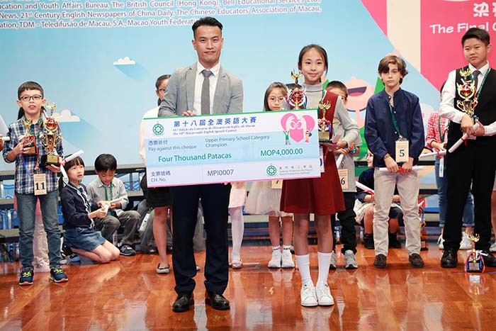 This year's contest is specially designed to celebrate the 20th anniversary of the establishment of the Macao Special Administrative Region, the overall theme of the 18th Macao-wide English Speech Contest being“MY BELOVED MACAO”. Under this theme, the subtopics for the different categories were:“Macao and the Greater Bay Area”(for the College Category),“Macao and the Maritime Silk Road”(for the Senior High School Category), “Macao's Bright Future and Me” (for the Junior High School Category),“Macao: My Beautiful City”for the Upper Primary School Category and“My Favourite Food in Macao”for the Lower Primary School Category. The final round of the Contest included a total of 64 contestants, who were selected from among 148 contestants who participated in the semifinal round on 13th October 2019. The students displayed their English skills and their ability to reflect on the world around them, thus preparing them to serve Macao society in the future.
