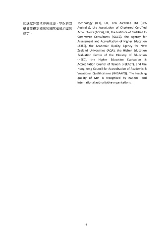 的課程評鑑或專業認證,學院的教 Technology (IET), UK, CPA Australia Ltd (CPA