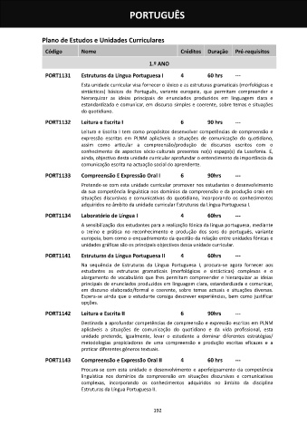 PORT1131 Estruturas da Língua Portuguesa I 4 60 hrs ---