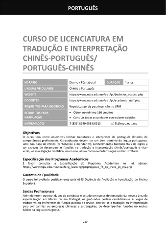 O curso tem como objectivos formar tradutores e intérpretes de português dotados de