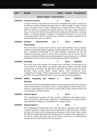 COMP406 Selected Topics I 3 45 hrs ---