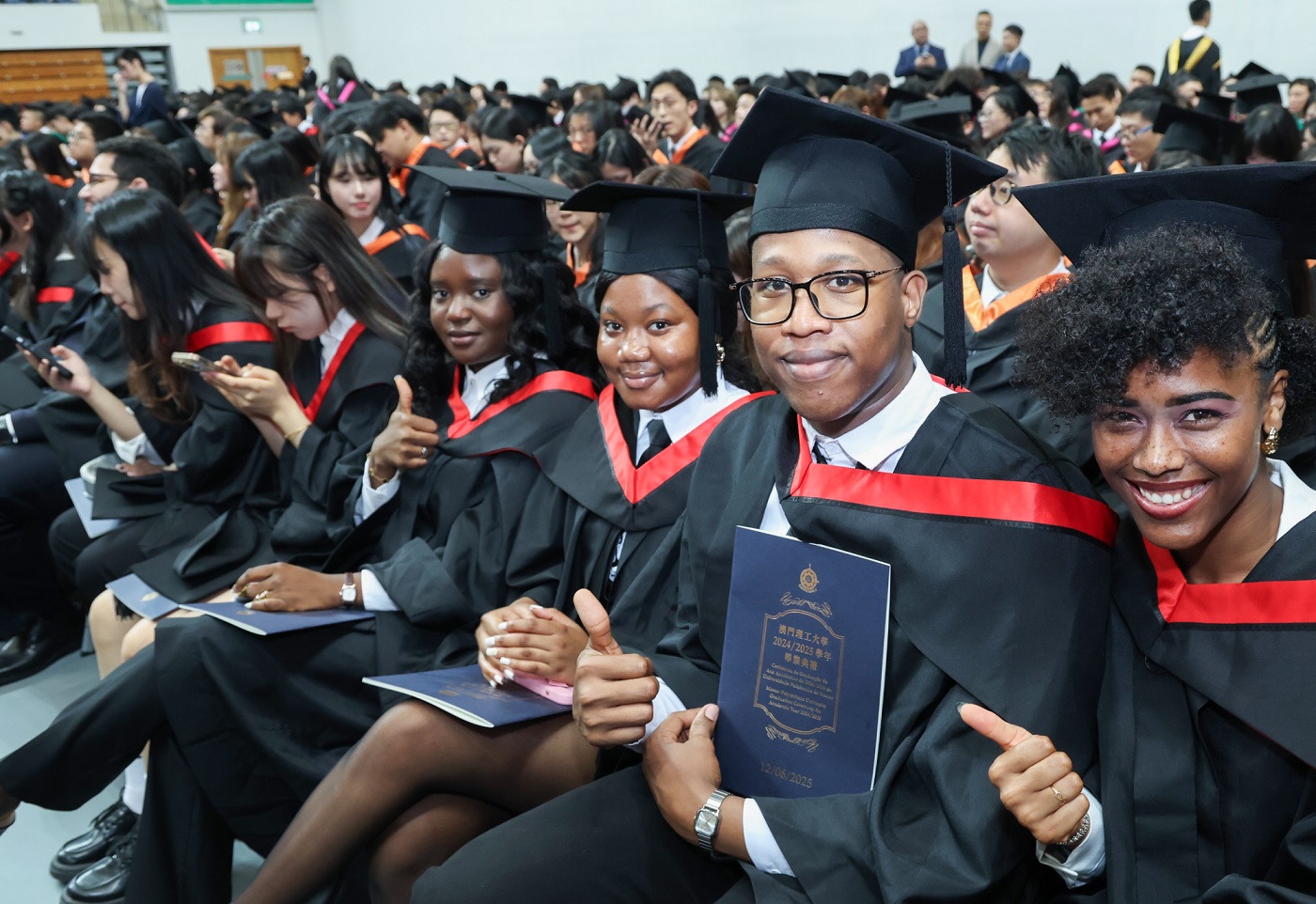 A Cerimónia de Graduação do Ano Académico de 2024/2025 da Universidade Politécnica de Macau (UPM) teve lugar no dia 12 de Junho, no Pavilhão Polidesportivo da UPM. A Cerimónia começou com o hastear da Bandeira Nacional e com a execução instrumental e vocal do Hino Nacional da República Popular da China. Graduaram-se mais de 1 500 alunos de cursos de doutoramento, mestrado e licenciatura, iniciando uma nova etapa da vida. No seu discurso, a Secretária para os Assuntos Sociais e Cultura do Governo da Região Administrativa Especial de Macau (RAEM), O Lam, reconheceu o contributo da UPM para a construção e expansão da “Plataforma Sino-Lusófona”.