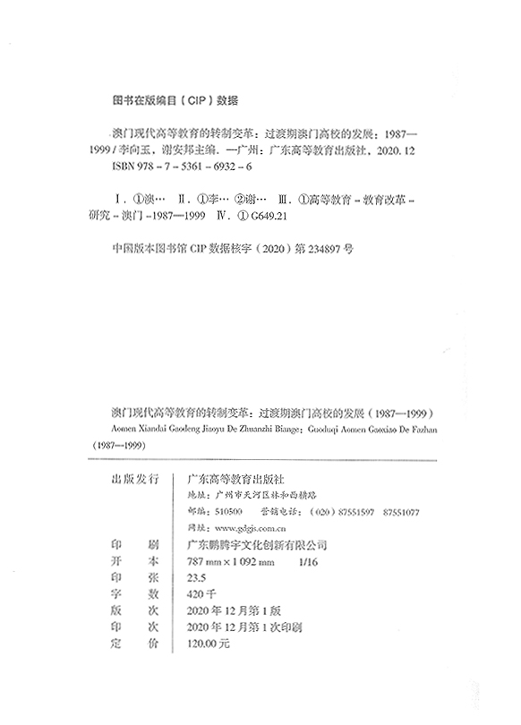 澳門現代高等教育的轉制變革:過渡期澳門高校的發展(1987-1999)