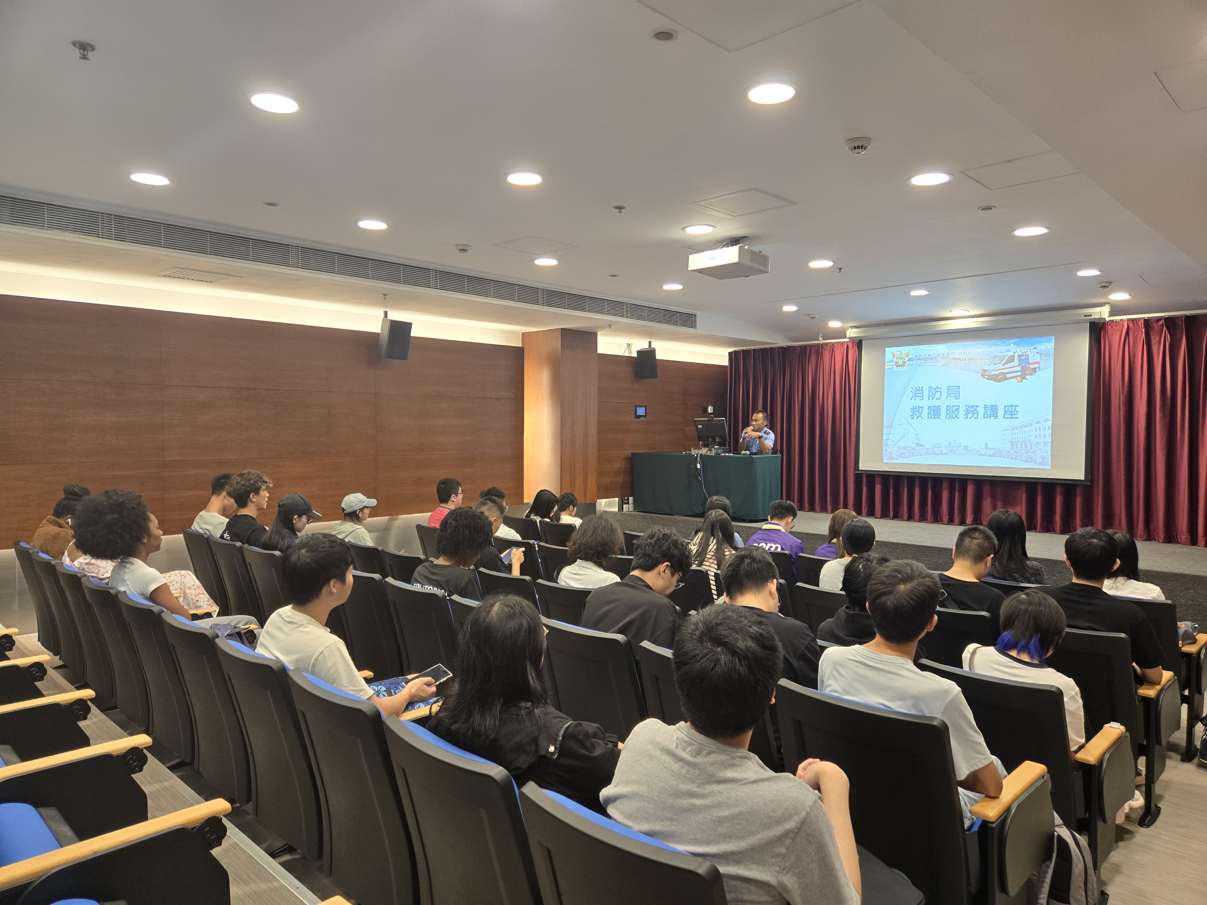 Fire safety is everyone’s concern. To effectively raise university students’ awareness of fire safety, the Student Affairs Office of Macao Polytechnic University organises an annual “Fire Safety Knowledge” lecture, aiming to improve students’ daily fire prevention awareness and emergency response capabilities. The lecture invites representatives from the Fire Services Bureau of Macao SAR and Macao Electric Power Company Limited to explain and share knowledge about fire prevention, emergency rescue and electrical safety. It is designed to equip students with correct fire self-rescue methods, electrical safety guidelines, as well as basic emergency rescue procedures.