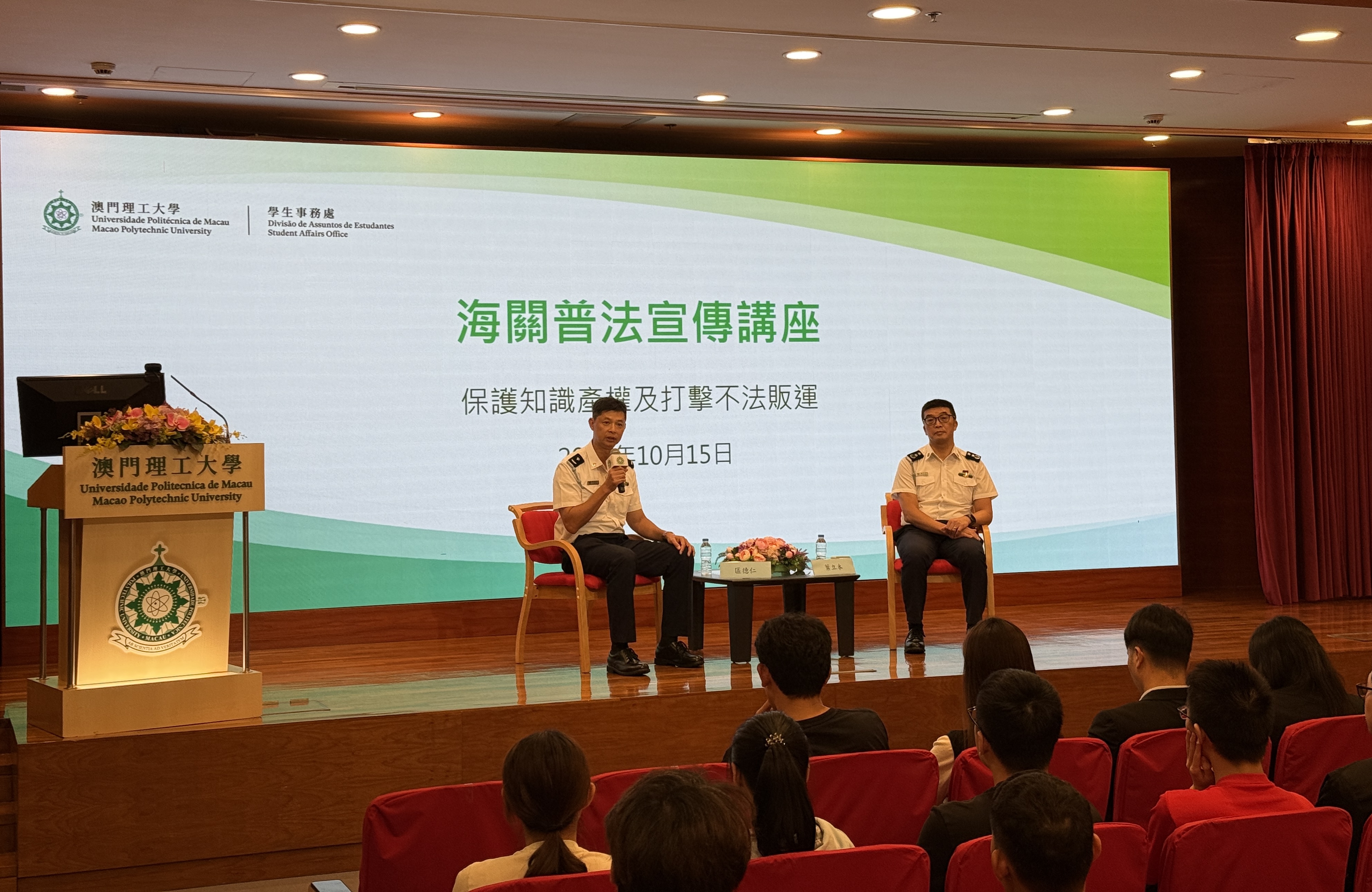 為提升大學生的防罪守法意識,澳門理工大學學生事務處邀請澳門特別行政區海關代表主講“普法專題講座”,讓學生建立正確的價值觀,增強法治觀念,培養守法自律的好公民。