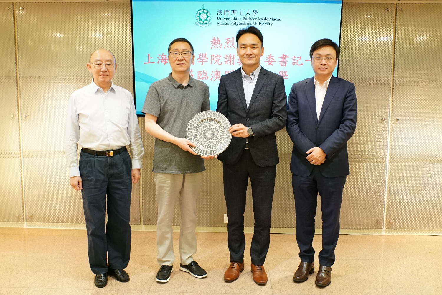 上海戲劇學院黨委書記謝巍一行,在澳門日報社長陸波的陪同下,於4月11日到訪澳門理工大學,受到澳門特區政府教育及青年發展局局長龔志明、澳門理工大學校長嚴肇基等的歡迎接待,雙方就發展演藝、戲劇、電影人才培養、舉辦各類藝術活動等學術交流合作項目進行探討,氣氛愉快。