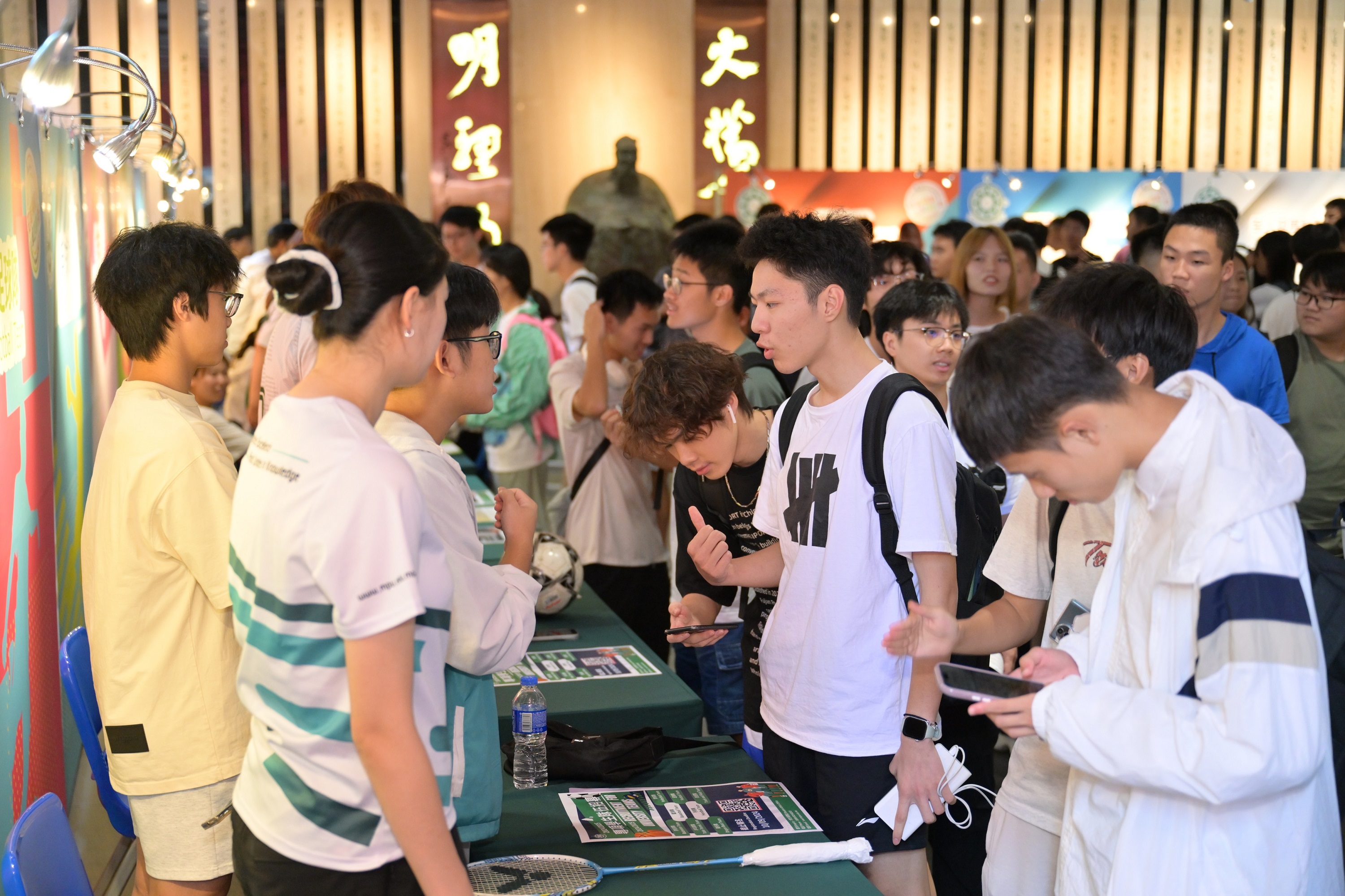 活動現場氣氛熱烈,各專項學生隊伍,包括廣東話、普通話及英語辯論隊,及田徑、龍舟、足球、羽毛球、籃球、排球和手球等運動隊,均安排現場示範和體驗活動,讓學生深入瞭解各項目的特色,並與隊員進行交流互動,感受團隊精神和競技氛圍。透過參與專項學生隊伍,學生有機會接受專業校隊教練的指導,並代表大學參加比賽,拓展視野,增強團隊合作能力。同場還設有澳門特別行政區政府衛生局的活力健康站,為學生檢測身體狀況、提供健康小知識。
