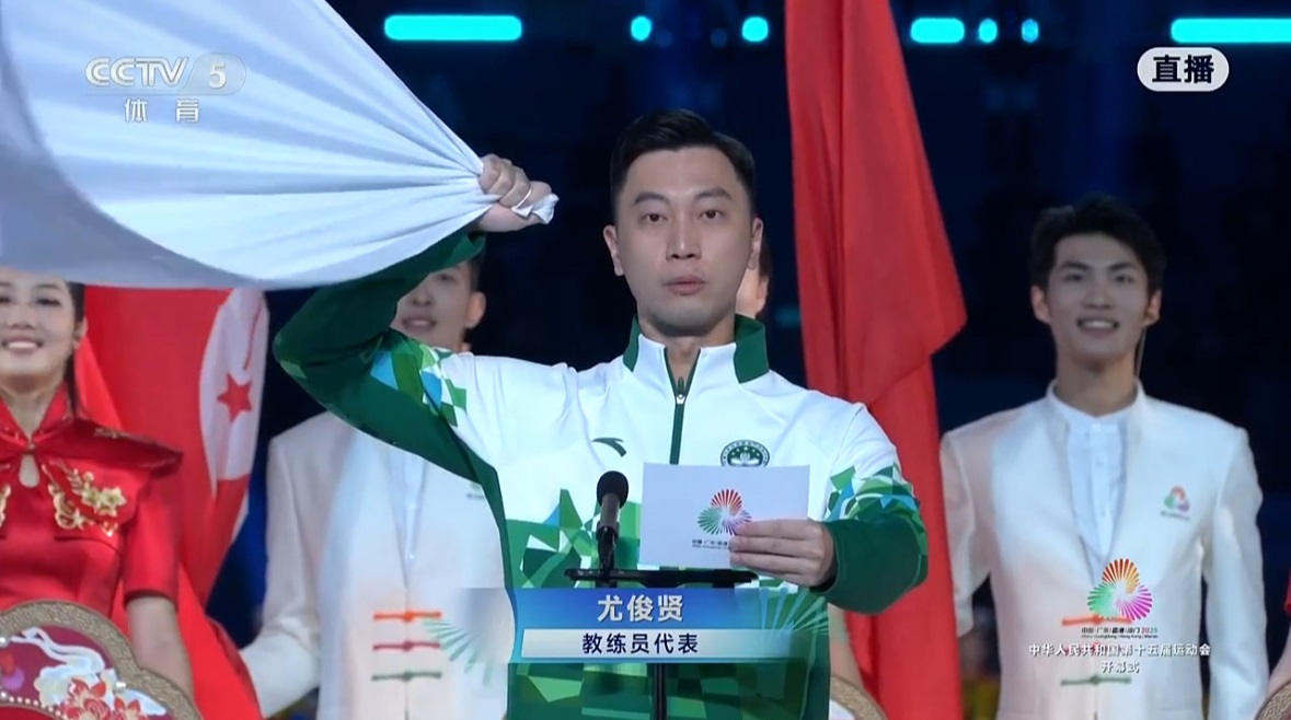 同場,太極世界冠軍、澳門理工大學體育與運動科學博士課程學生、澳門武術總會總教練尤俊賢,於開幕儀式上擔任教練員代表宣誓,莊嚴宣讀誓詞,體現澳門運動員及教練團隊對體育運動的專業態度與責任感。