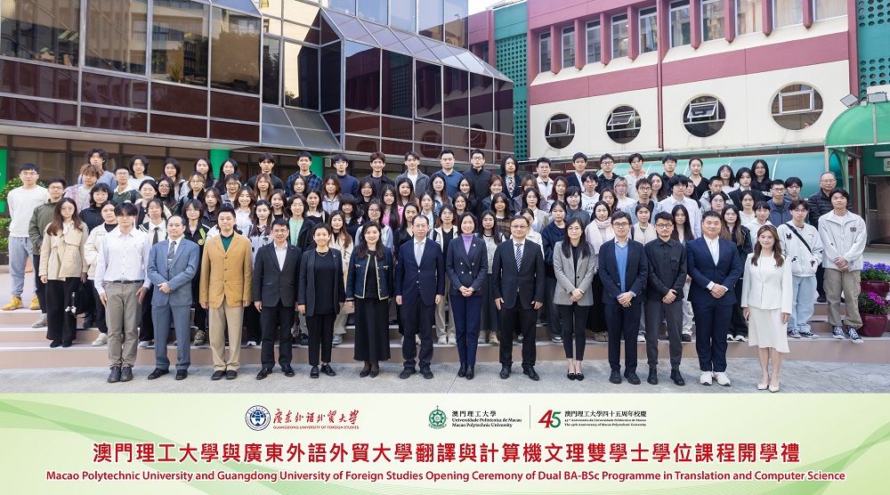 廣外—澳理大合作辦學項目於2023年6月由澳門理工大學校長嚴肇基、廣東外語外貿大學黨委書記石佑啟啓動及共同揭牌,項目採用“3+1”文理雙學位培養模式,學生在澳理大學習的一年時間中,將重點聚焦技術應用、創新實踐與跨文化體驗。項目由兩校選拔的高水平國際化教師組成教學團隊,課程設計強調前沿性和跨學科性,與國際標準接軌,並納入國家高等教育和澳門高等教育質量保證體系,確保教學質量。出席“翻譯及計算機文理雙學士學位課程開學禮”的嘉賓尚包括:廣東外語外貿大學港澳台事務工作部副部長陸露(主持工作)、信息科學與技術學院副院長王連喜、高級翻譯學院副院長王巍巍;澳門理工大學應用科學學院院長林燦堂、學術事務部部長張詠藍、電腦學理學士學位課程主任鄧樹傑、招生註冊處處長蘇碧玲,以及公共關係辦公室主任蕭嘉琳等。
