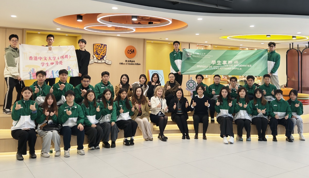 為喜迎澳門理工大學建校45周年,以及推動粵港澳大灣區教育緊密合作,深化培養大灣區青年的愛國主義,澳門理工大學學生事務處與香港中文大學(深圳)學生事務處聯合舉辦跨校升旗儀式。澳理大國旗儀仗隊一行24名師生前往香港中文大學(深圳),與該校國旗護衛隊開展聯合升旗訓練及互動交流,藉以凝聚澳深兩地學子的情誼,共同厚植家國情懷。